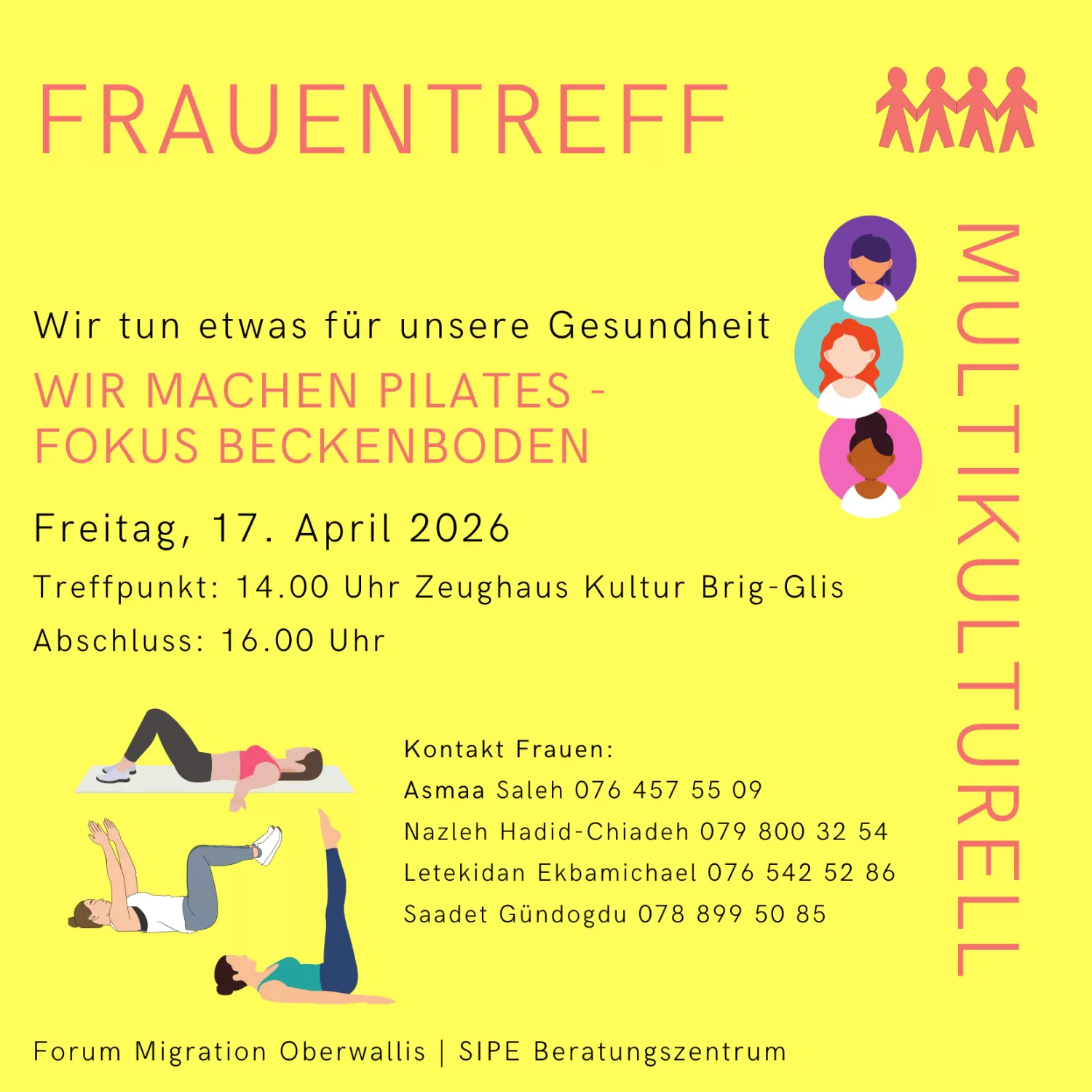 Beim April-Frauentreff wenden wir das im März-Treff gelernte an: Zusammen mit Venia Charania von Physio Life machen wir Pilates mit dem Fokus Beckenboden.