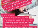 Ab September findet die juristische Beratung nur noch 2x pro Monat statt