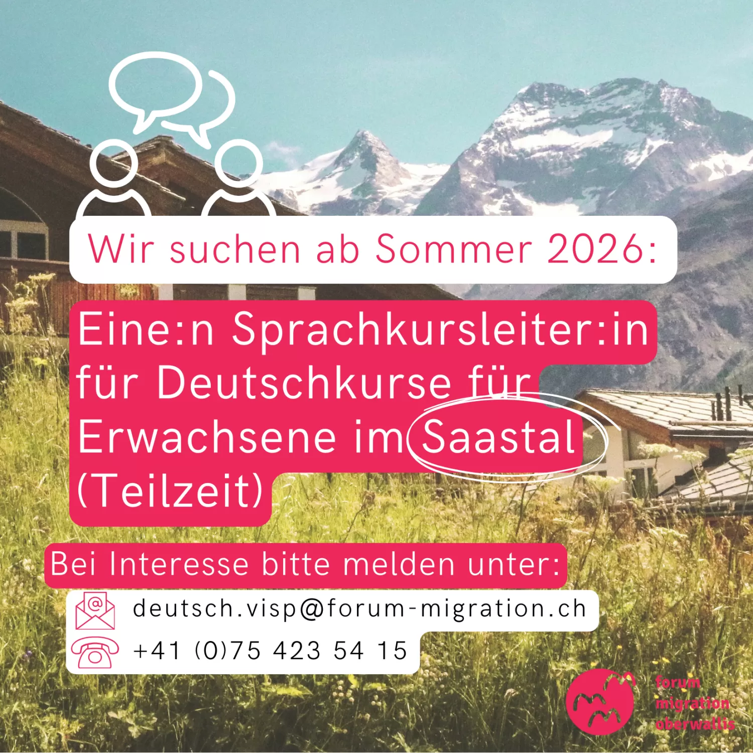 GESUCHT: Sprachkursleiter:in Deutsch in Saas-Fee (Teilzeit)