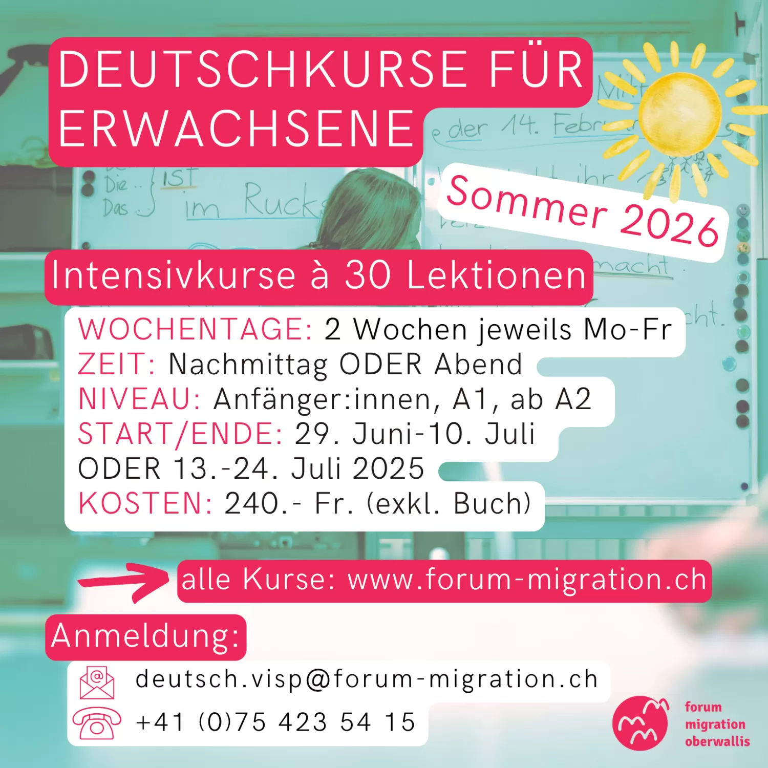 Die Angebote für die Intensiv-Deutschkurse im Sommer 2026 sind online!